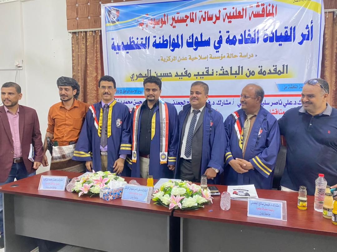حصل الباحث نقيب مفيد حسين اليهري مدير اصلاحية عدن المركزية على الماجستير بامتياز من كلية العلوم التطبيقية بجامعة عدن عن رس...