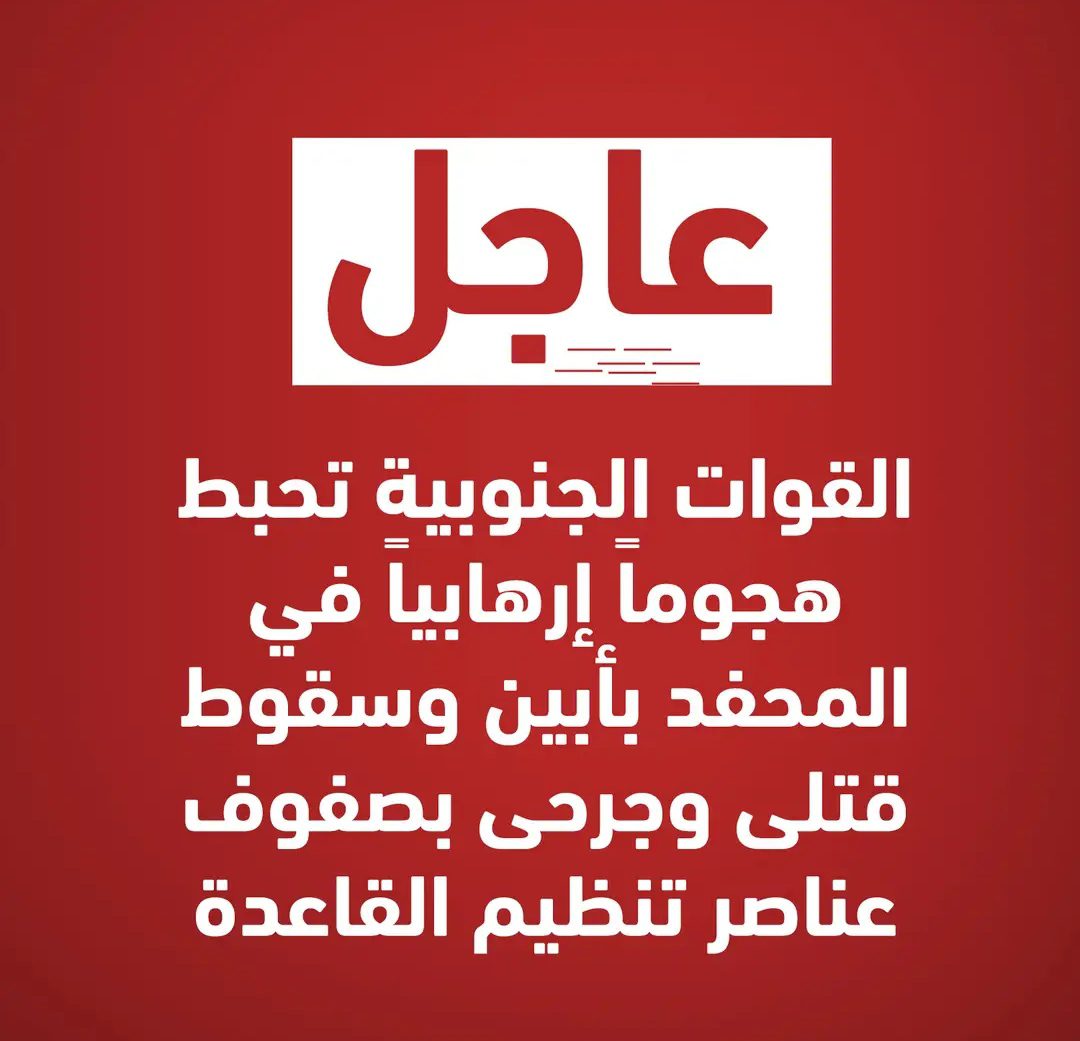 تمكنت القوات المسلحة الجنوبية من إحباط هجوما ارهابيا من قبل عناصر تنظيم القاعدة الإرهابي في أطراف وادي الخيالة بمديرية الم...