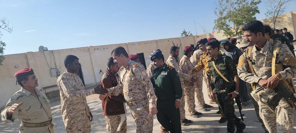 تفقد قائد محور عتق, اللواء عادل المصعبي، ومدير عام شرطة شبوة العميد ركن فؤاد محمد النسي، اليوم الجمعة، خلال زيارة عيديه أح...