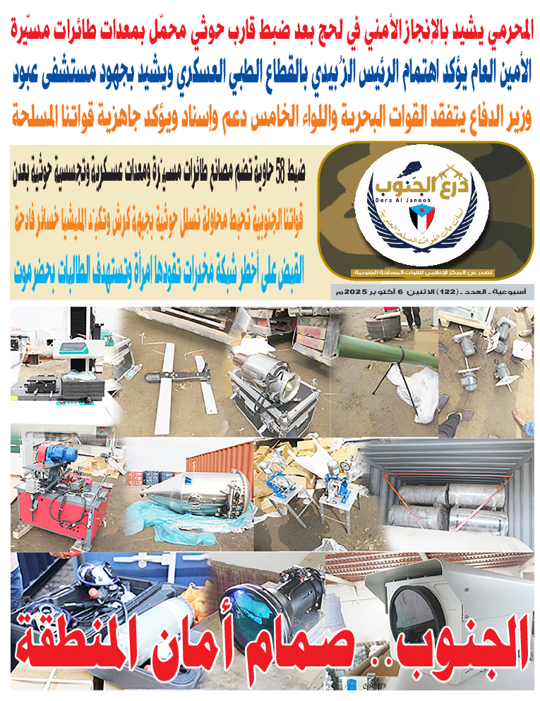 تصفح العدد (122) من صحيفة (درع الجنوب ) الصادر اليوم الاثنين الموافق 6 أكتوبر 2025م |