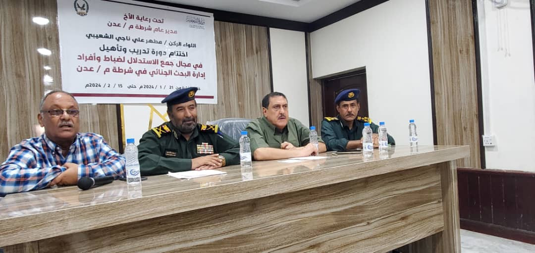 وأشاد مدير أمن العاصمة عدن اللواء الركن مطهر الشعيبي بالمتدربين من ضباط وأفراد إدارة البحث الجنائي الذين استطاعوا خلال فترة هذه الدورة من كشف كثير من خيوط الجرائم ورفع التقارير والبلاغات في كثير من القضايا الامنية التي تحدث في الميدان.