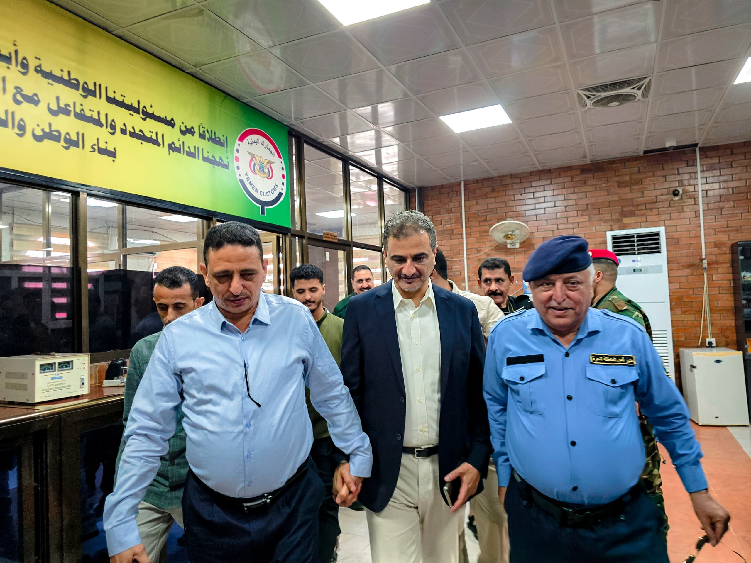 وعقد لملس والشعيبي، خلال الزيارة، اجتماعًا مع القيادات الجمركية والأمنية، للوقوف على سير العمل، وبحث التسهيلات اللازمة لدعم التجّار وتنشيط حركة الميناء، مشددين على أهمية تعزيز التنسيق لضمان جاهزية الميناء أمنيًا وجمركيًا، وتطوير الأداء بما يُسهم في دعم الاقتصاد الوطني.