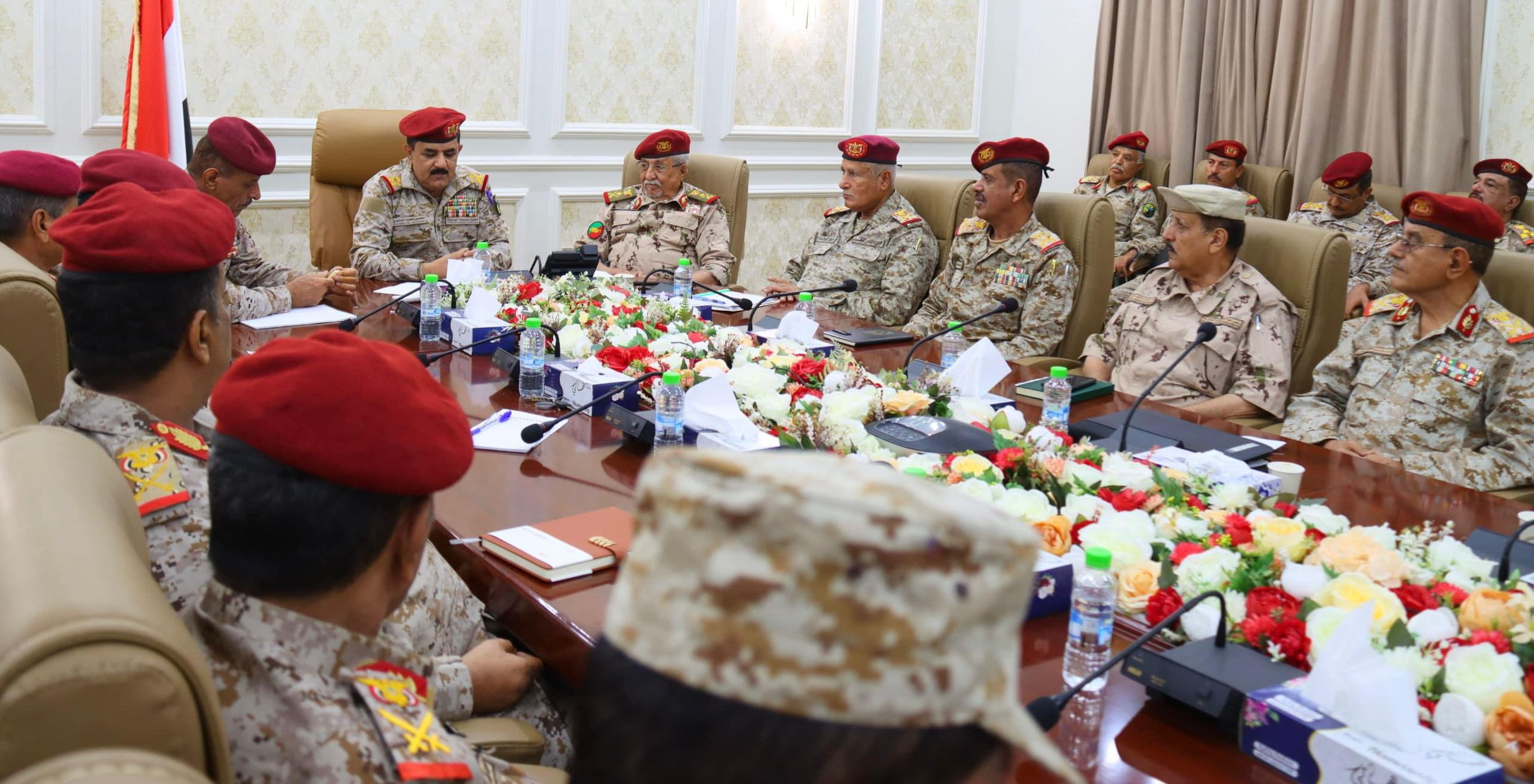 ووقف الاجتماع، على طبيعة الموقف العسكري في مختلف جبهات ومحاور القتال، وتخادم مليشيات الحوثي الإرهابية مع التنظيمات الإرهابية لمحاولة إقلاق السكينة في المناطق المحررة.