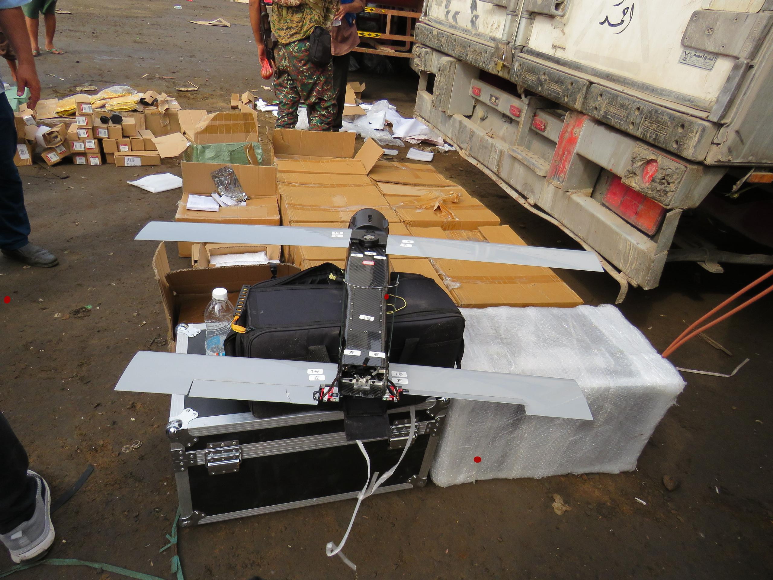 وتتضمن الشحنة خام المواد المكونة لهياكل وأجسام الطائرات المسيرة من الألياف الكربونية والمواد العازلة والبلاستيك الخام، مع جهاز الحقن الخاص بتشكيل البلاستيك، وسبائك الألومنيوم ومكابس وآلات التقطيع والقياس، وأدوات لحام وأسطوانات أوكسجين، وملابس واقية للمهندسين والفنيين الذين يعملون في مصانع وورش التصنيع.