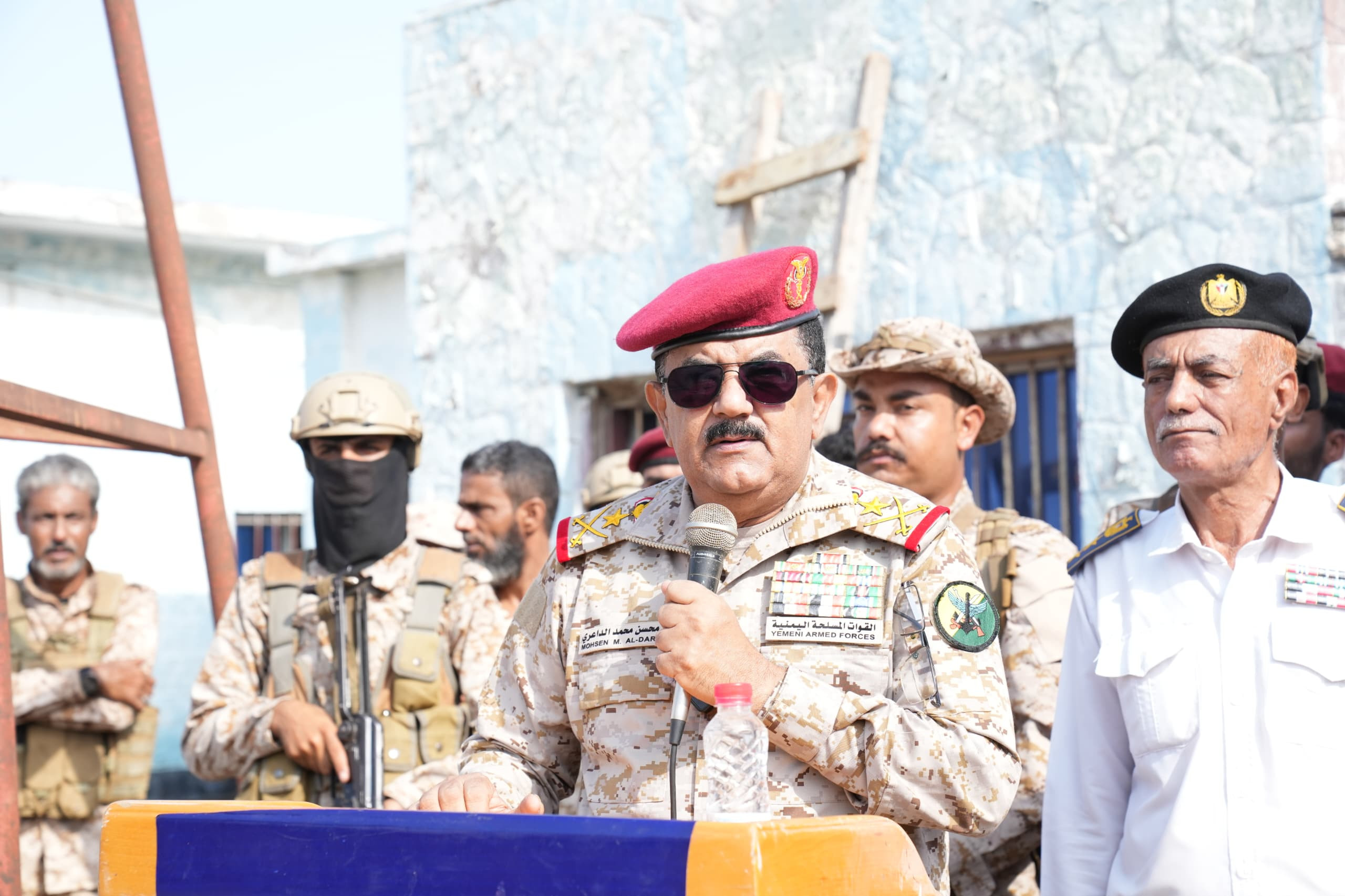 قام وزير الدفاع الفريق الركن محسن الداعري، اليوم، بزيارة تفقدية لقيادة القوات البحرية والدفاع الساحلي والقاعدة البحرية في العاصمة عدن، ضمن جولته الميدانية للقوى والمناطق والتشكيلات العسكرية وجبهات القتال، حيث كان في استقباله مستشار وزير الدفاع، قائد القوات البحرية الفريق الركن عبدالله النخعي.