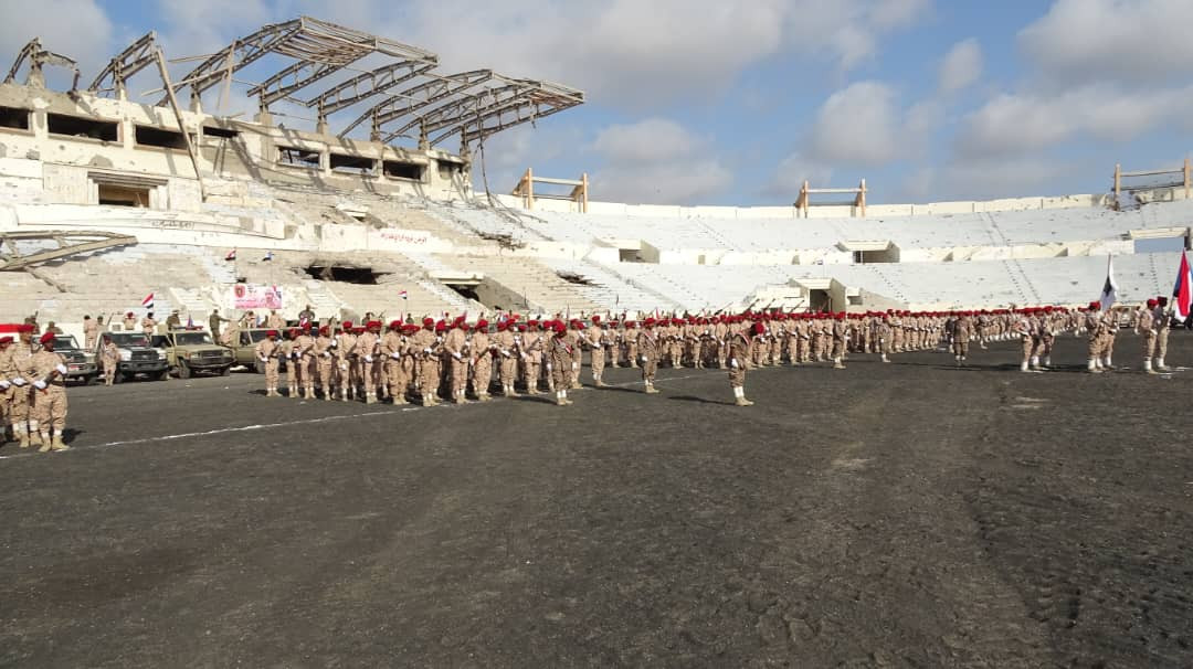 وشهد الميدان عرضاً مهيباً نفذته الوحدات القتالية المشاركة، عكست من خلاله مستوى الجاهزية والانضباط العسكري والروح القتالية العالية التي تتحلى بها قوات الدعم والإسناد والحزام الأمني في محافظة أبين.