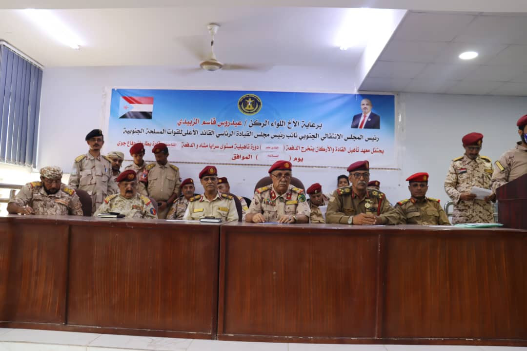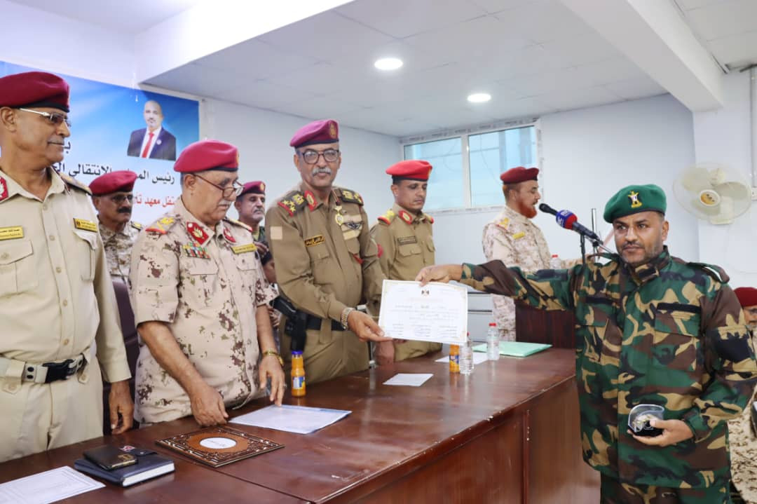 وفي الحفل، أكد مدير المعهد اللواء الركن عبده محمد مكرد اعتزاز المعهد بما يحققه من نجاحات متواصلة في مجال التأهيل العسكري، مشيداً بالدعم الكبير للقيادة السياسية والعسكرية الجنوبية ممثلة بالرئيس القائد عيدروس قاسم الزبيدي، رئيس المجلس الانتقالي الجنوبي، القائد الأعلى للقوات المسلحة الجنوبية.