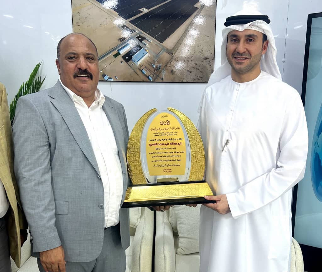كما كرم الرئيس القائد عيدروس قاسم الزُبيدي، على هامش انعقاد المؤتمر الأول للطاقة في العاصمة عدن، علي الشمّري المدير التنفيذي لشركة "GSU"، "جلوبال ساوث يوتيليتيز".