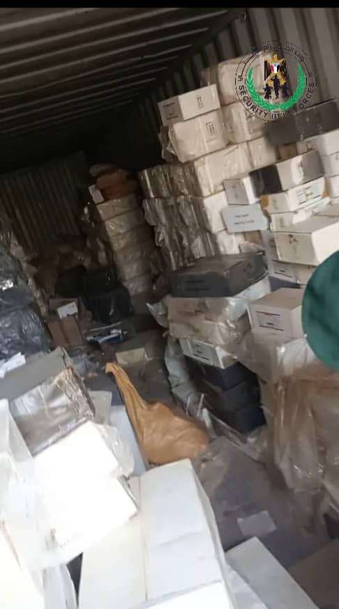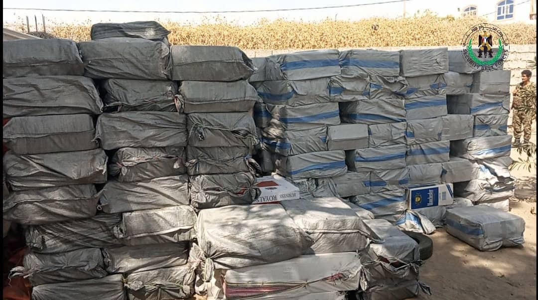 قوات الحزام الأمني بلحج تضبط مخازن لبيع وتوزيع مواد مهربة في منطقتي اللحوم والرباط