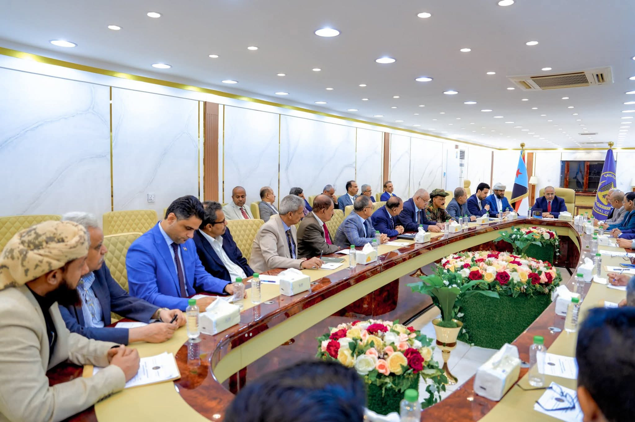 واستعرض الرئيس الزُبيدي في مستهل الاجتماع مستجدات الأوضاع السياسية والعسكرية والأمنية في عموم محافظات الجنوب، في ظل التطورات الراهنة، ونتائج اللقاء الذي عُقد مساء أمس مع قيادة القوات المشتركة للتحالف العربي، وما خرج به من تفاهمات لتعزيز الأمن والاستقرار في المحافظات المحررة، ومكافحة الإرهاب، وتأمين خطوط الملاحة وحماية الأمن البحري.