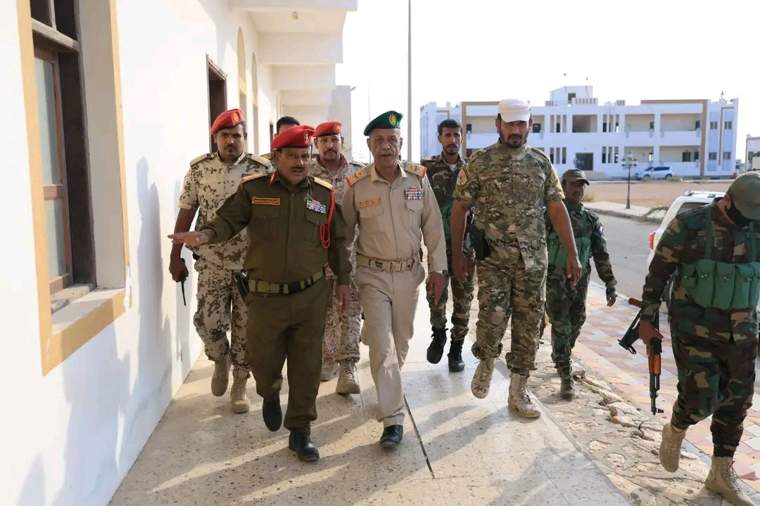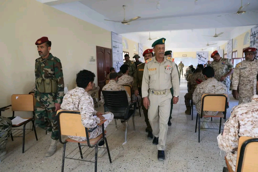 قائد المنطقة العسكرية الثانية يتفقد سير الامتحانات بدورة قادة السرايا في معهد الشهيد صالح أبوبكر بن حسينون لتدريب وتأهيل القادة بالمكلا